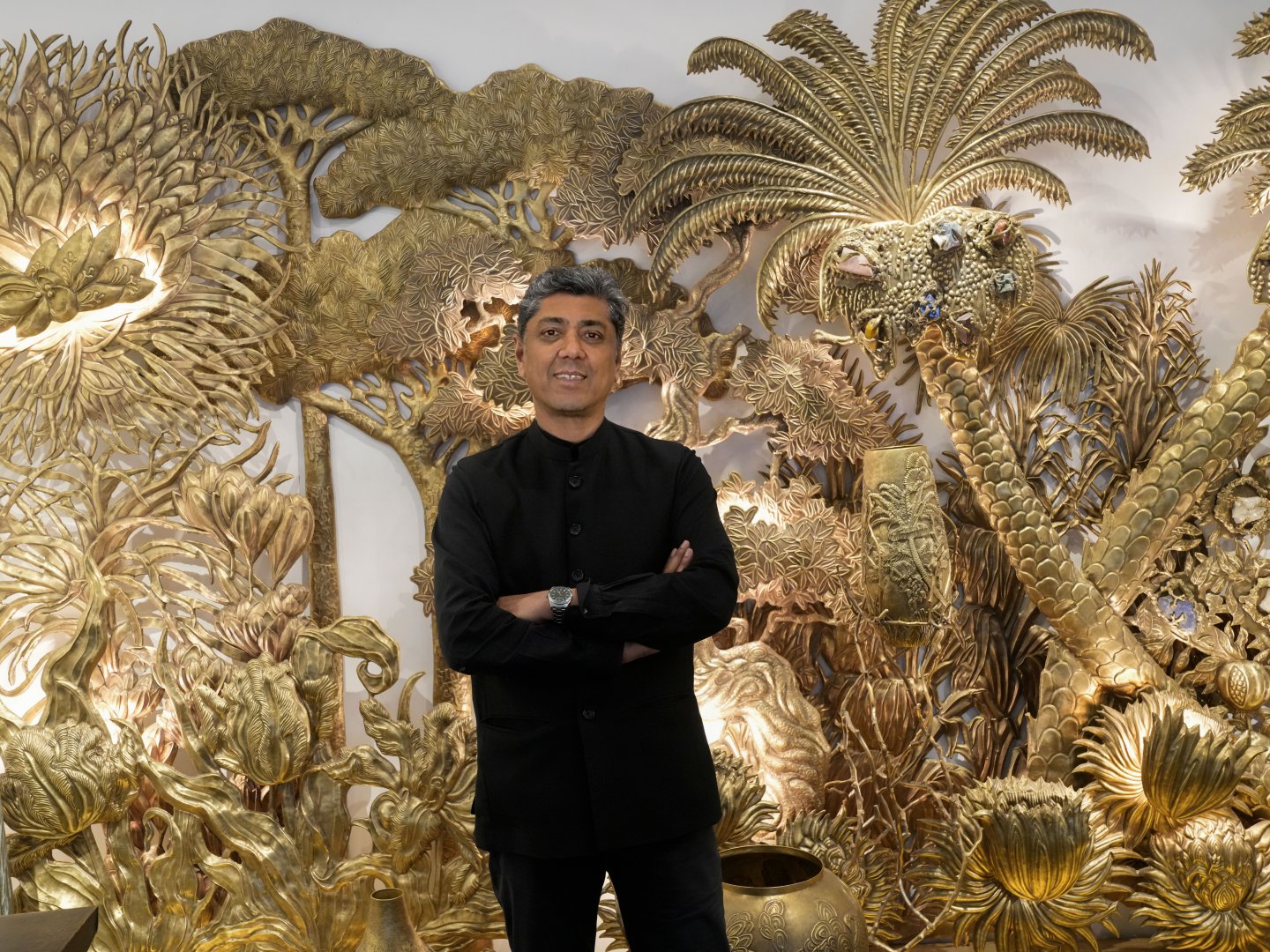 Vikram Goyal Studio collaborated with de Gournay, the creators of the world’s finest hand-painted wallpapers. This collaboration showcased a collection meticulously created of three designs, that are based on the studio’s brass repoussé artworks, which de Gournay has transformed into stunning bas-relief scenes on gilded paper.