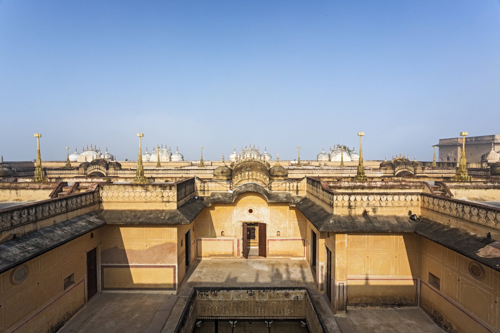 The ‘Harmony of the Heavens’ wallpaper reflects the astral observatories of India through an interplay of geometric forms, where the artwork transforms to echo the celestial instruments that orchestrate a profound dialogue with the cosmos above.