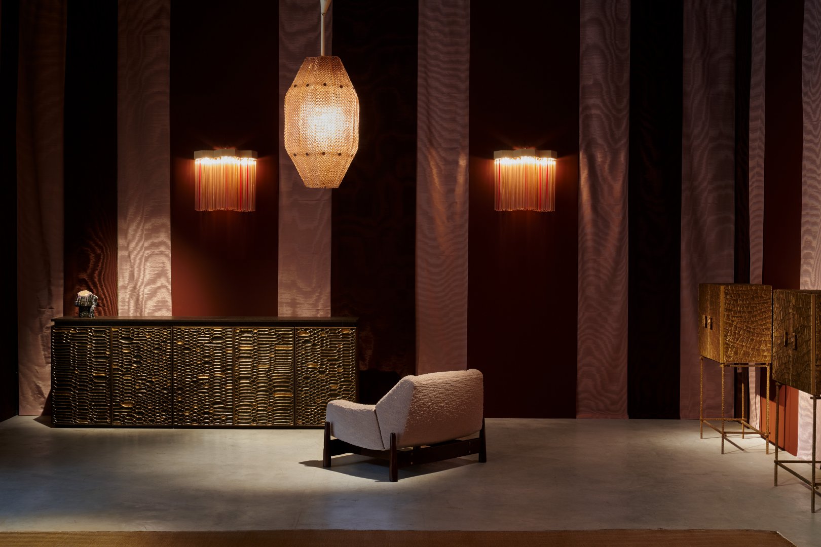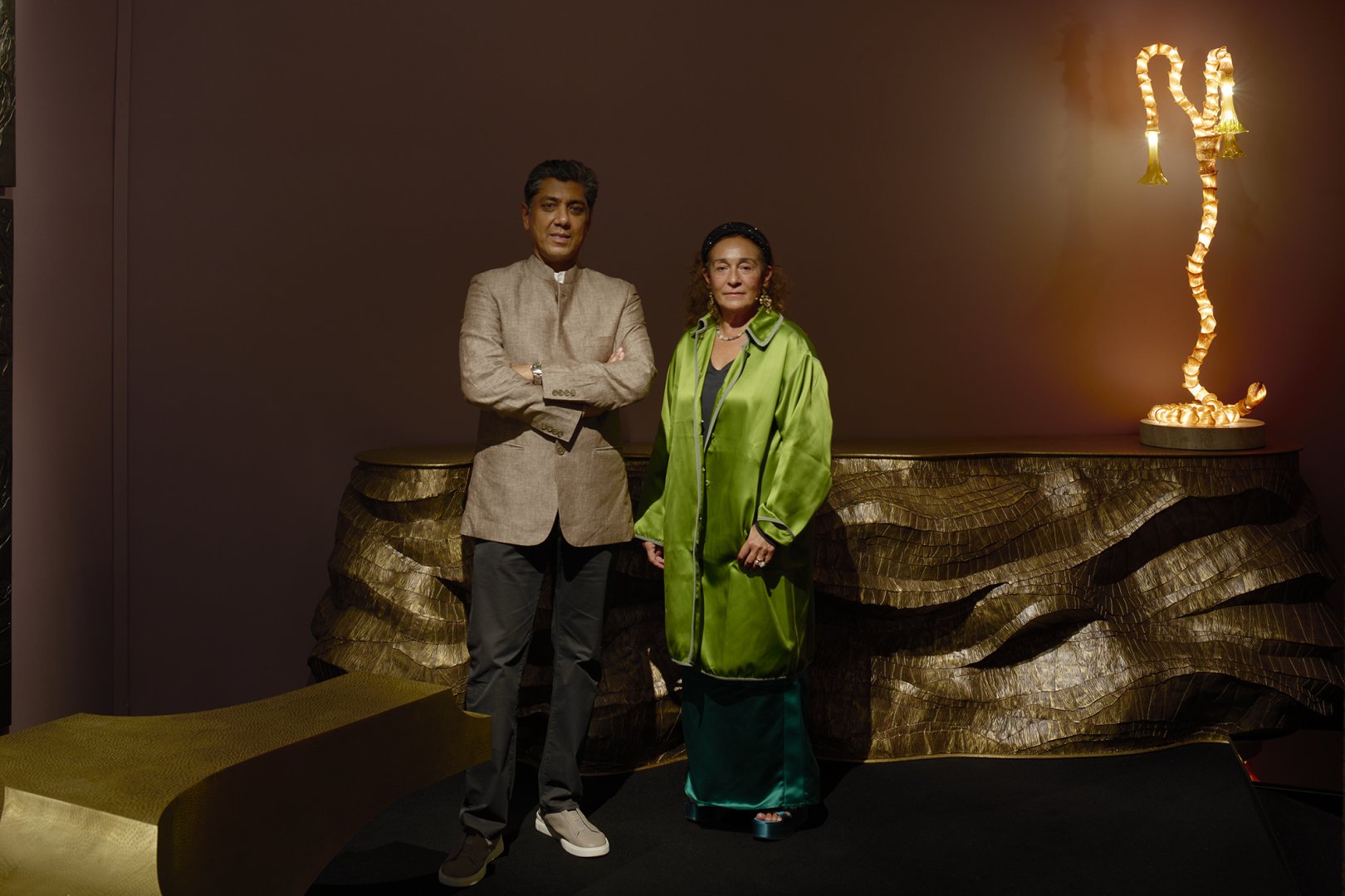 The collection of ten limited-edition pieces features furniture (consoles, benches, side tables), lighting (chandeliers, wall sconces) and wall panels – all intricately hand-made by expert artisans. Each object explores and celebrates a range of heritage techniques in metalwork that have existed in India as early as the 3rd or 4th century BC. One such is repoussé, the art of painstakingly hand-beating a metal sheet into three-dimensional forms. Vikram Goyal has spent 20 years cultivating expertise in this skill, and others, among his artisans, developing an abstract sophistication and contemporary design language, often imbuing almost academic and surprisingly modern interpretations of Indian cultural traditions, narratives and philosophies into his work. New pieces by Italian designer Christian Pellizzari will offer an enriching creative exchange with Vikram Goyal’s work on the stand.