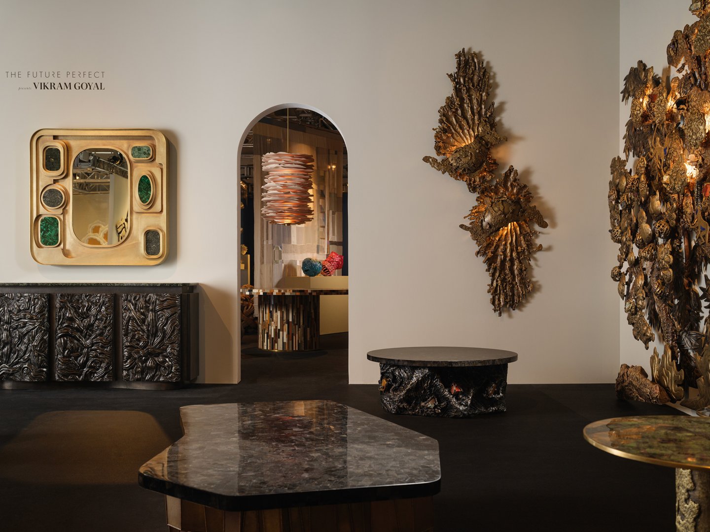Vikram Goyal Studio announced its debut at one of the world’s most prestigious design fairs, Design Miami, through a collaboration with The Future Perfect Gallery. Each piece exhibited demonstrates the studio’s mastery of techniques, such as casting and forging, hollowed joinery, Pietra dura, and the signature craft of repoussé, to create large complex forms.