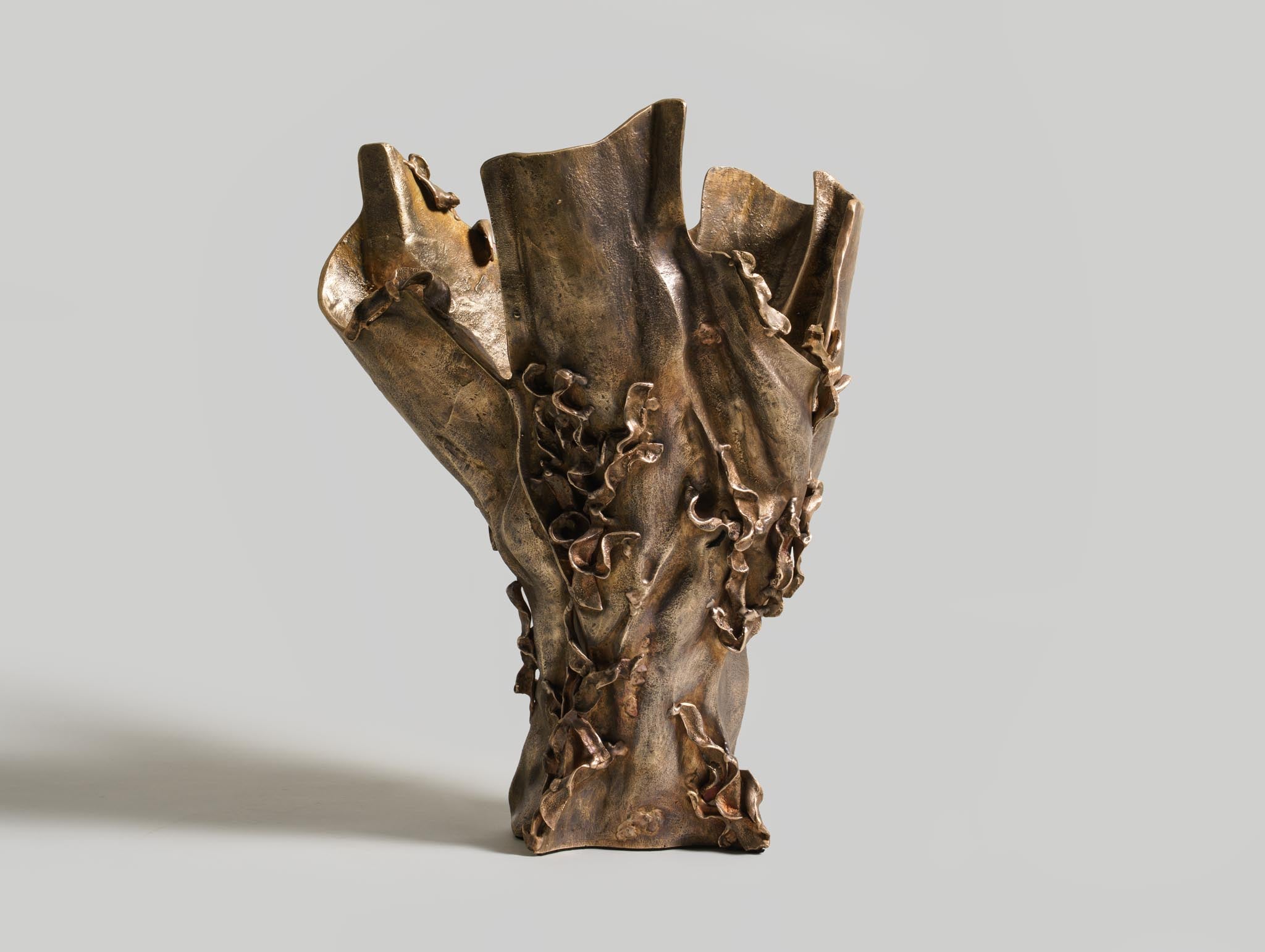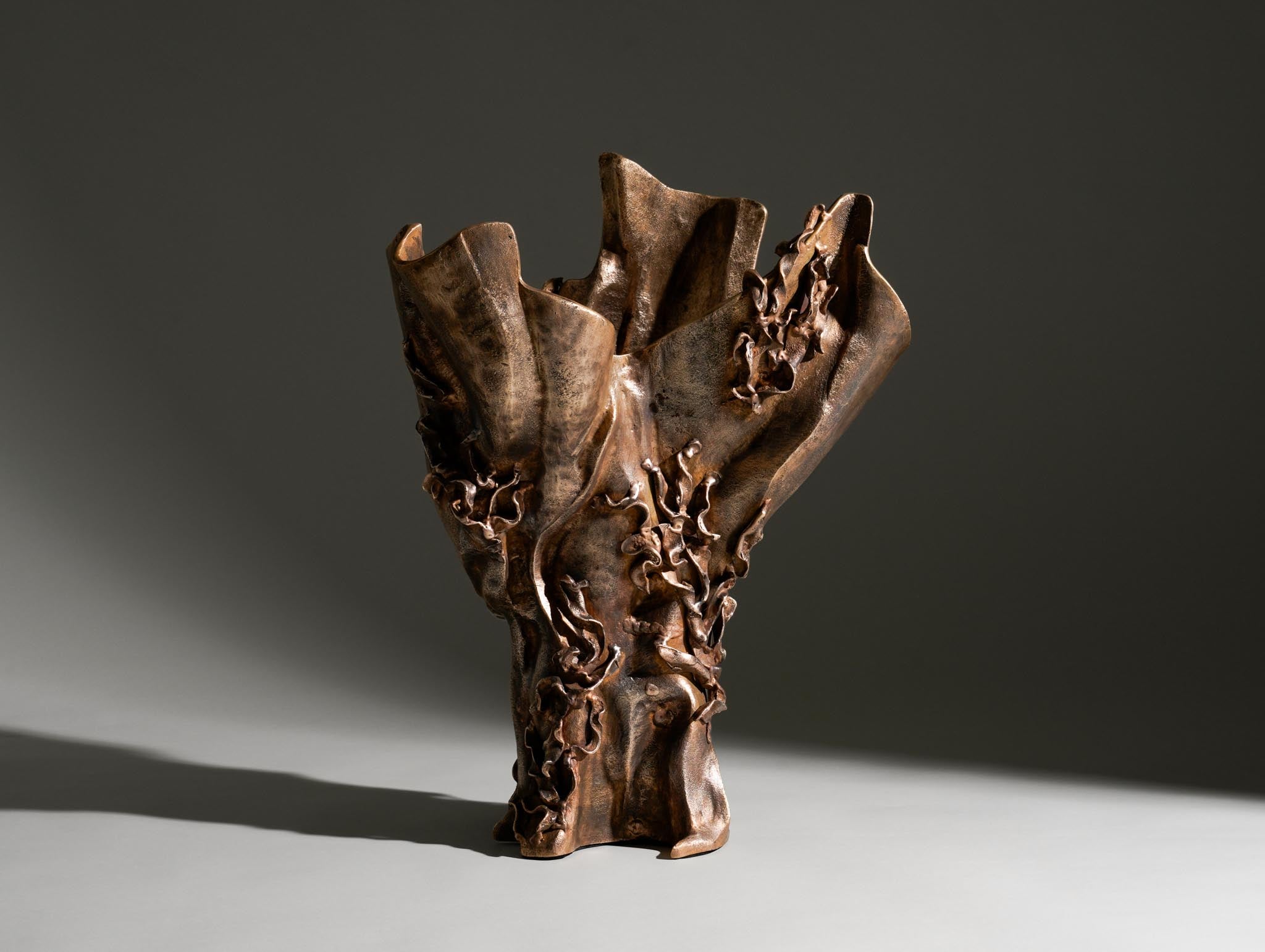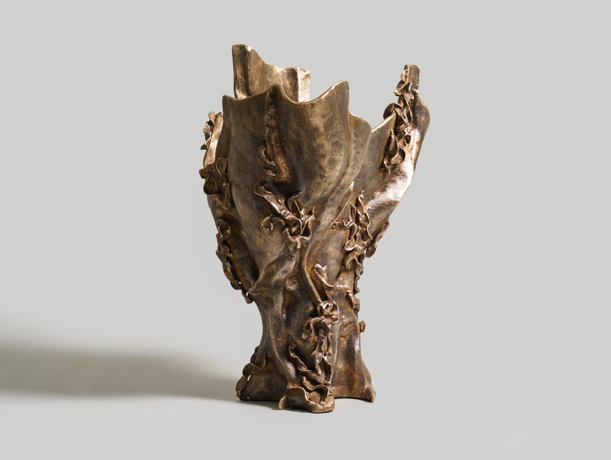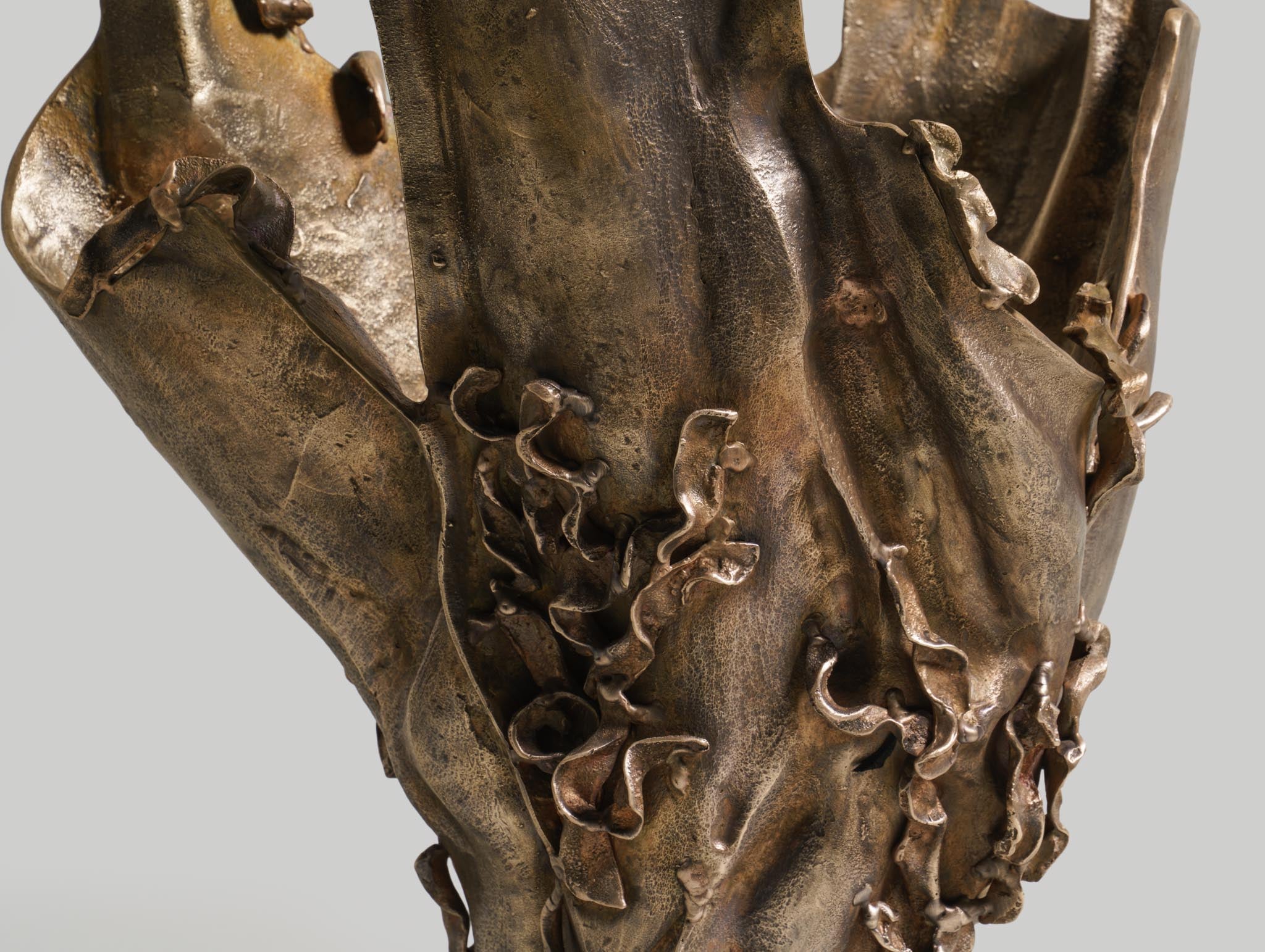 The Aravalli vessel is inspired by the sinuous forms of vines and the organic contours found in the base of trees in India’s forests. The sculptural vessel, which is cast entirely in bronze, captures the raw stages of growth, as if molten metal has taken root and risen from the earth. This piece marks the studio’s exploration of bronze casting, a technique that allows the material to flow, twist, and solidify into forms that appear almost alive.