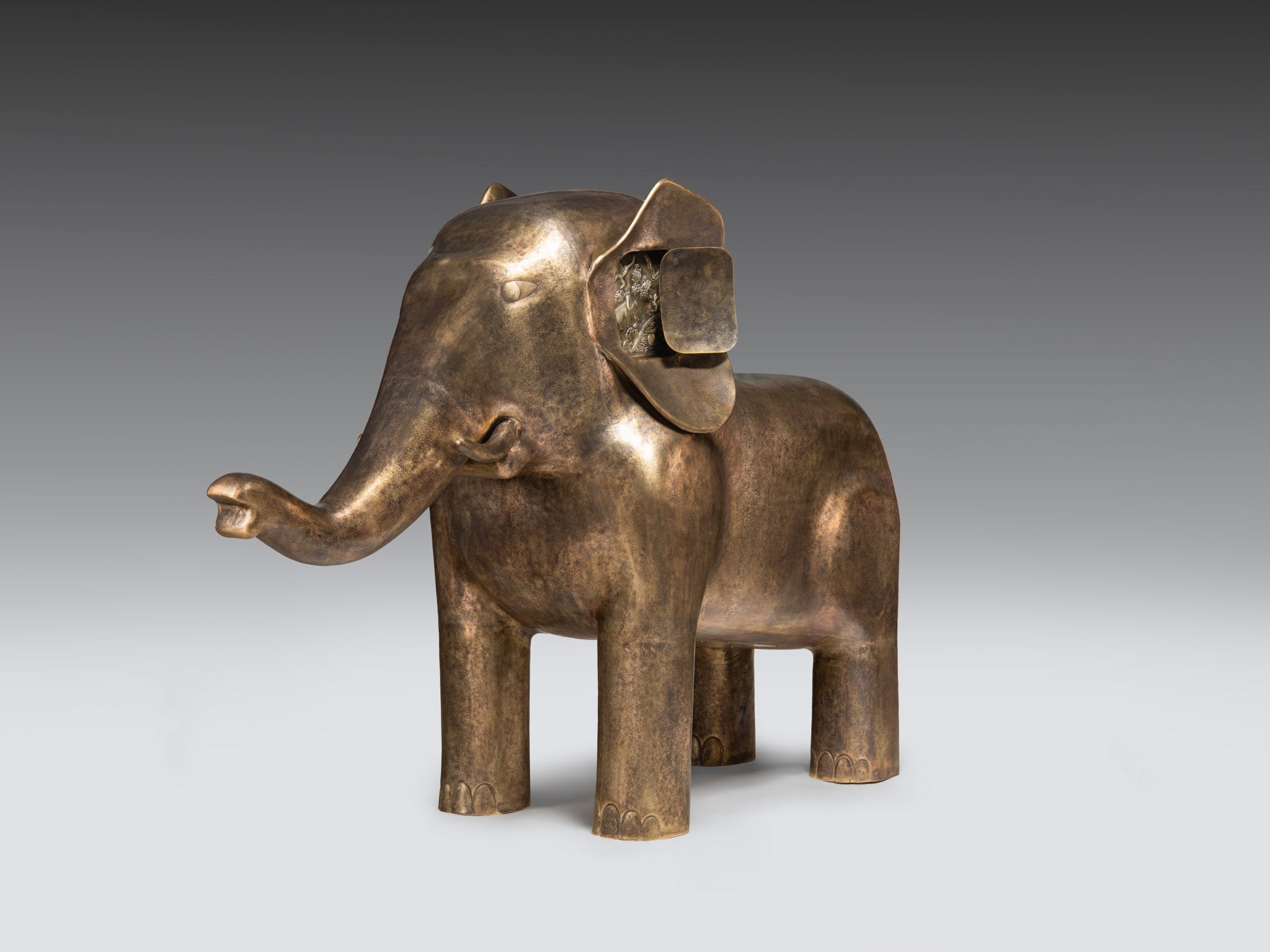 Crafted in brass through a union of hollowed joinery and intricate repoussé, the Gaja the elephant embodies narrative, giving shape to heritage and imagination. Majestic yet tender, it stands as both object and allegory — an enduring companion, a cosmic guardian, a living testament to wisdom and awe.