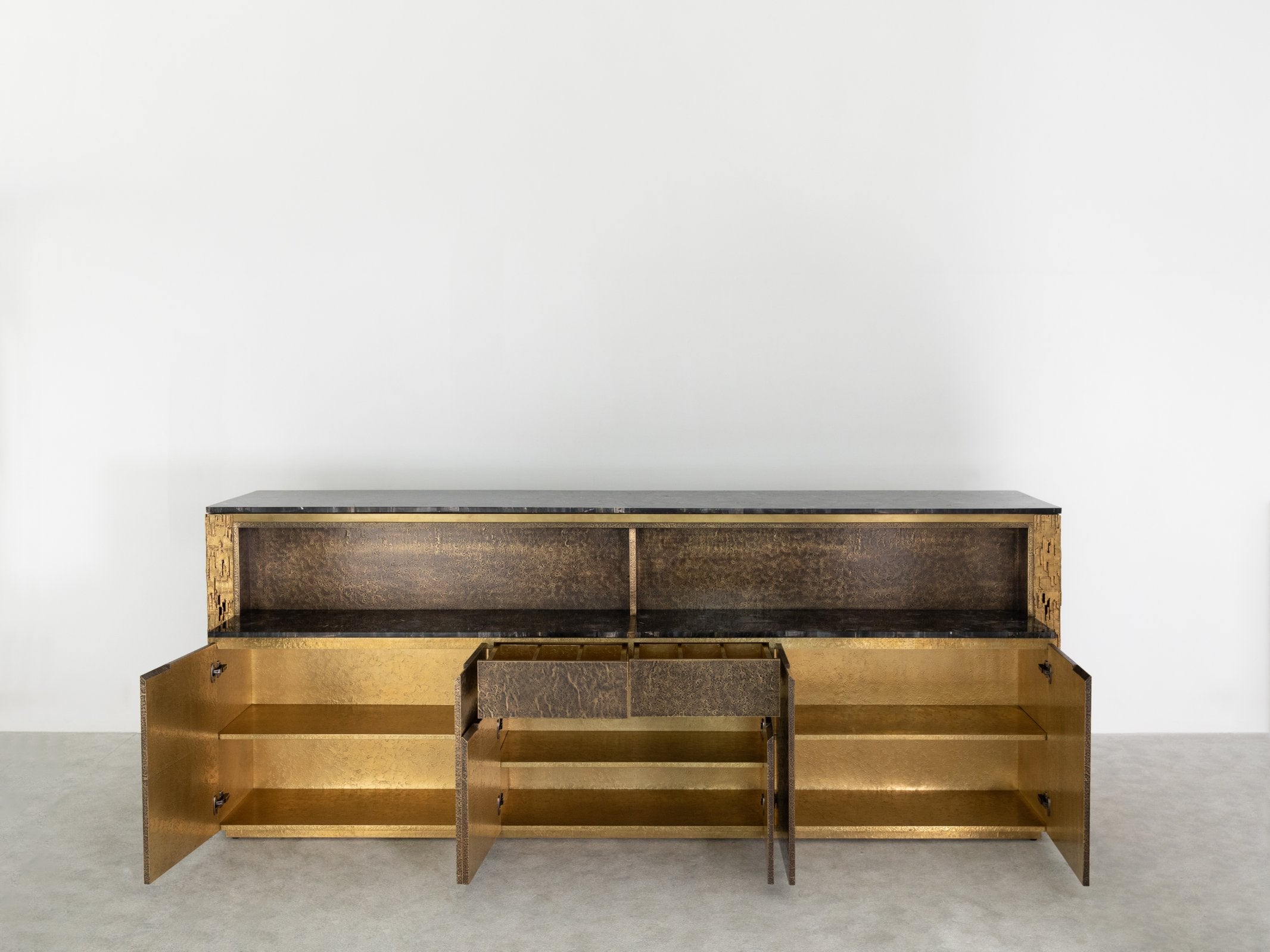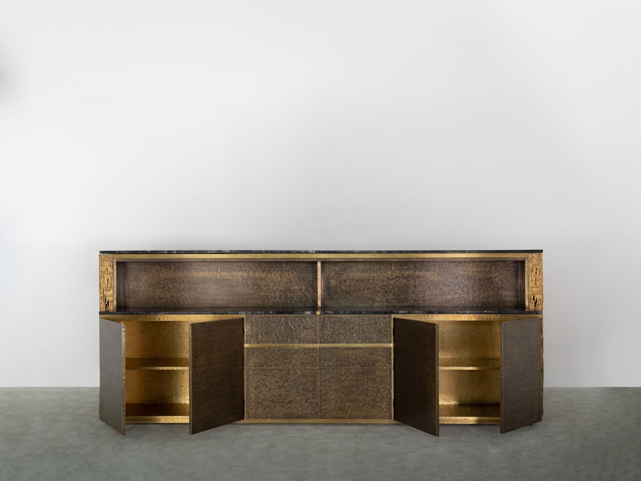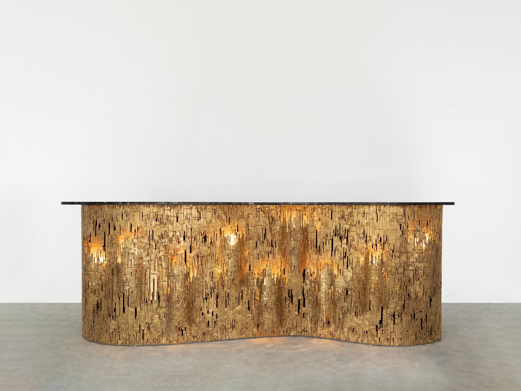 In its Brutalist splendor, the Persepolis Sconce combines sculpture with lighting. It also signified our studio's foray into the Brutalist style—a realm whose unfinished irregularities offer a particular joy to those working in metal.