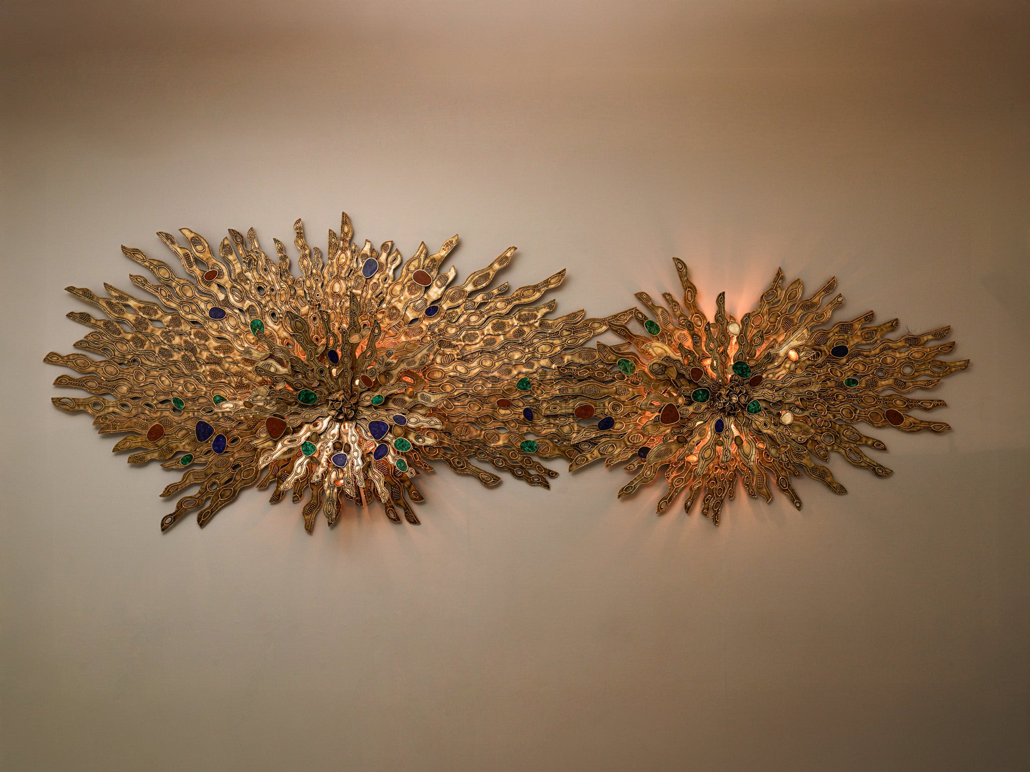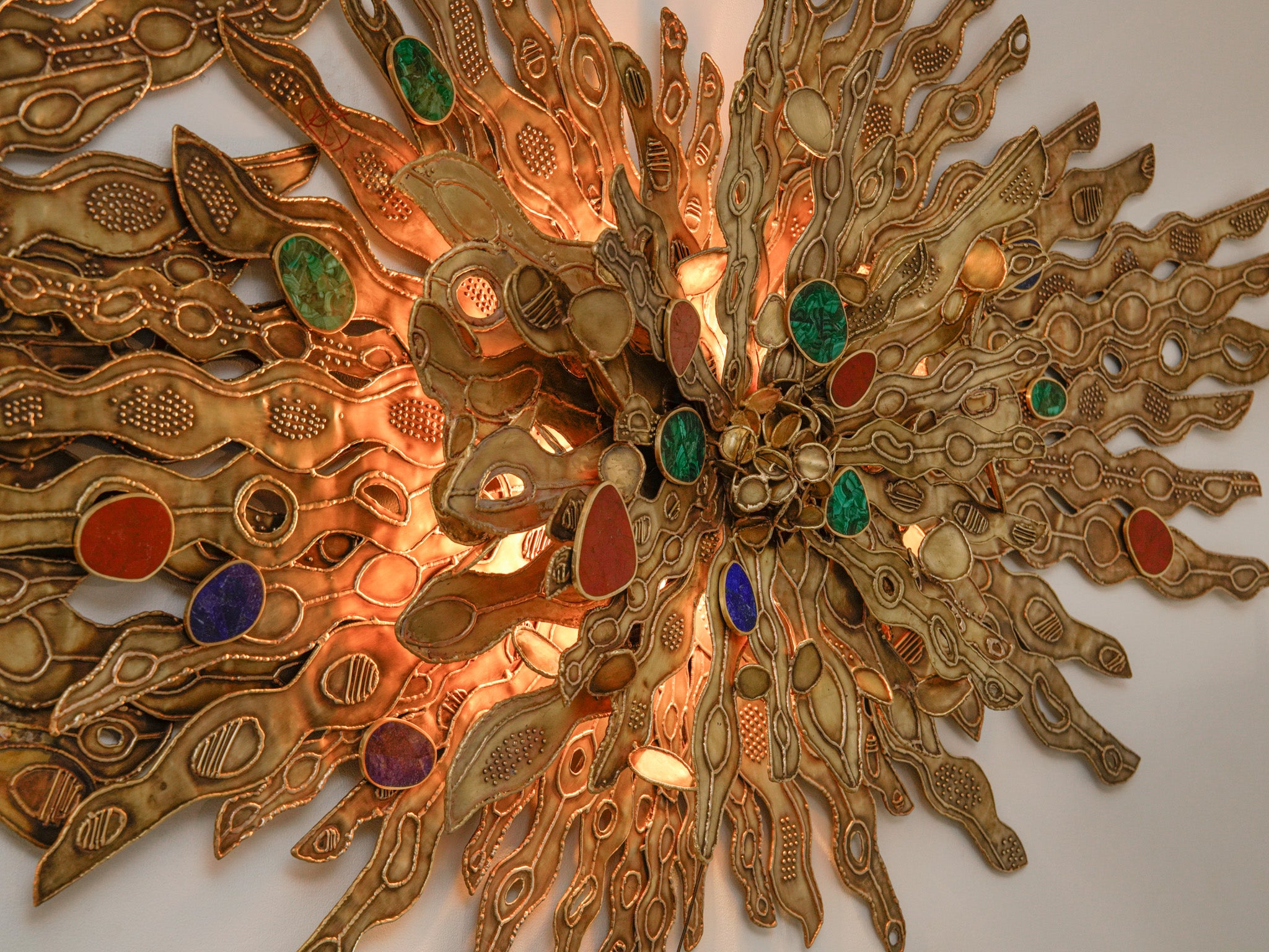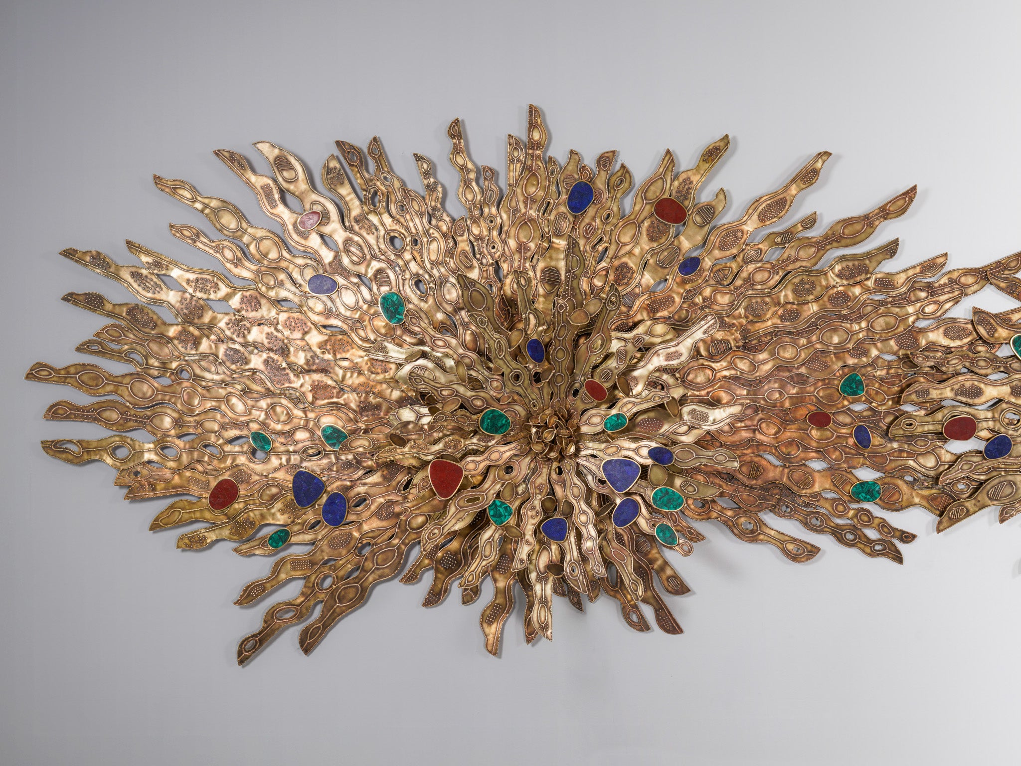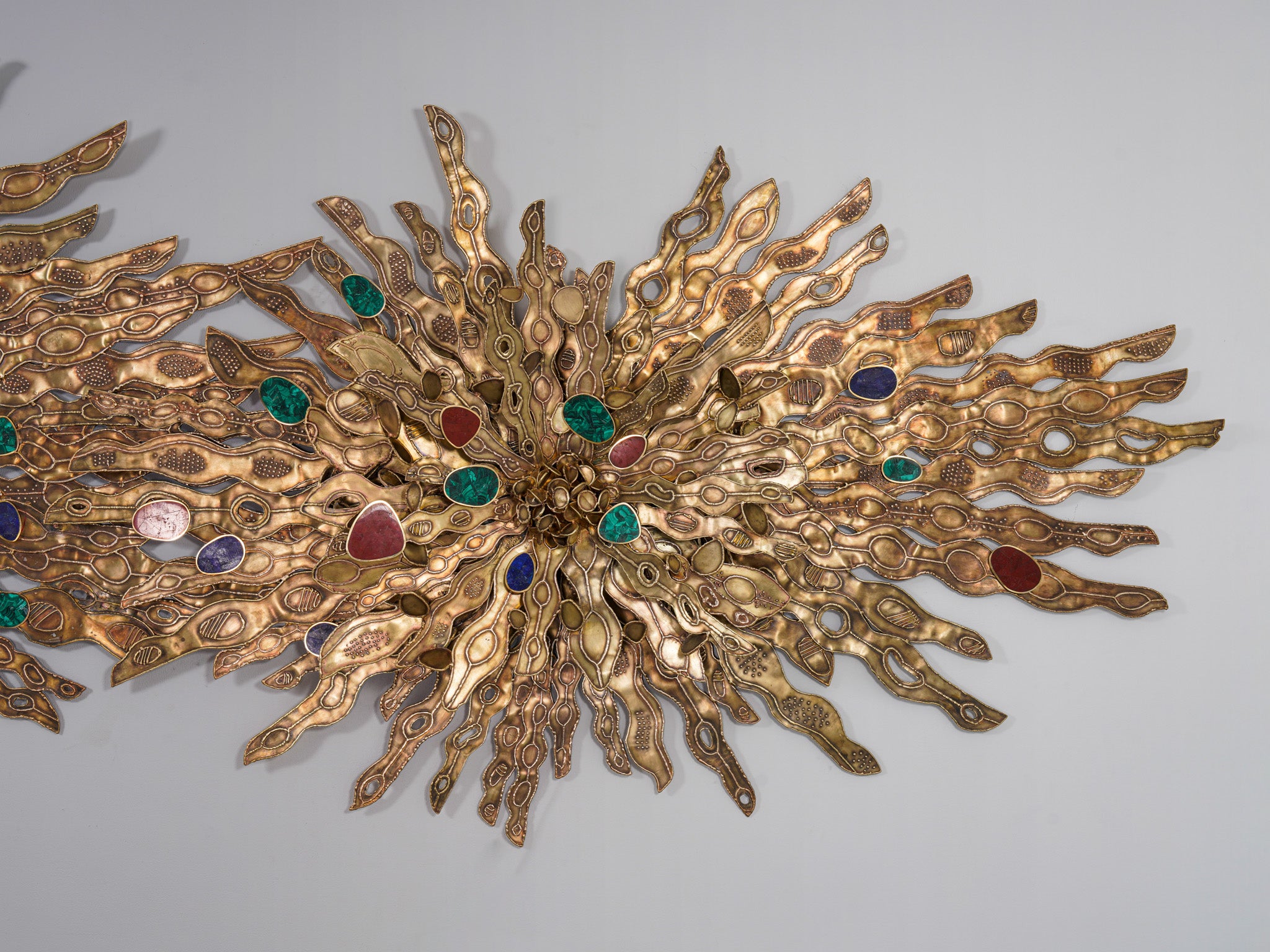 The intensity of the midnight sun, a unique phenomenon occuring at the North and South Pole, is translated into an elaborate screen made with cast brass.