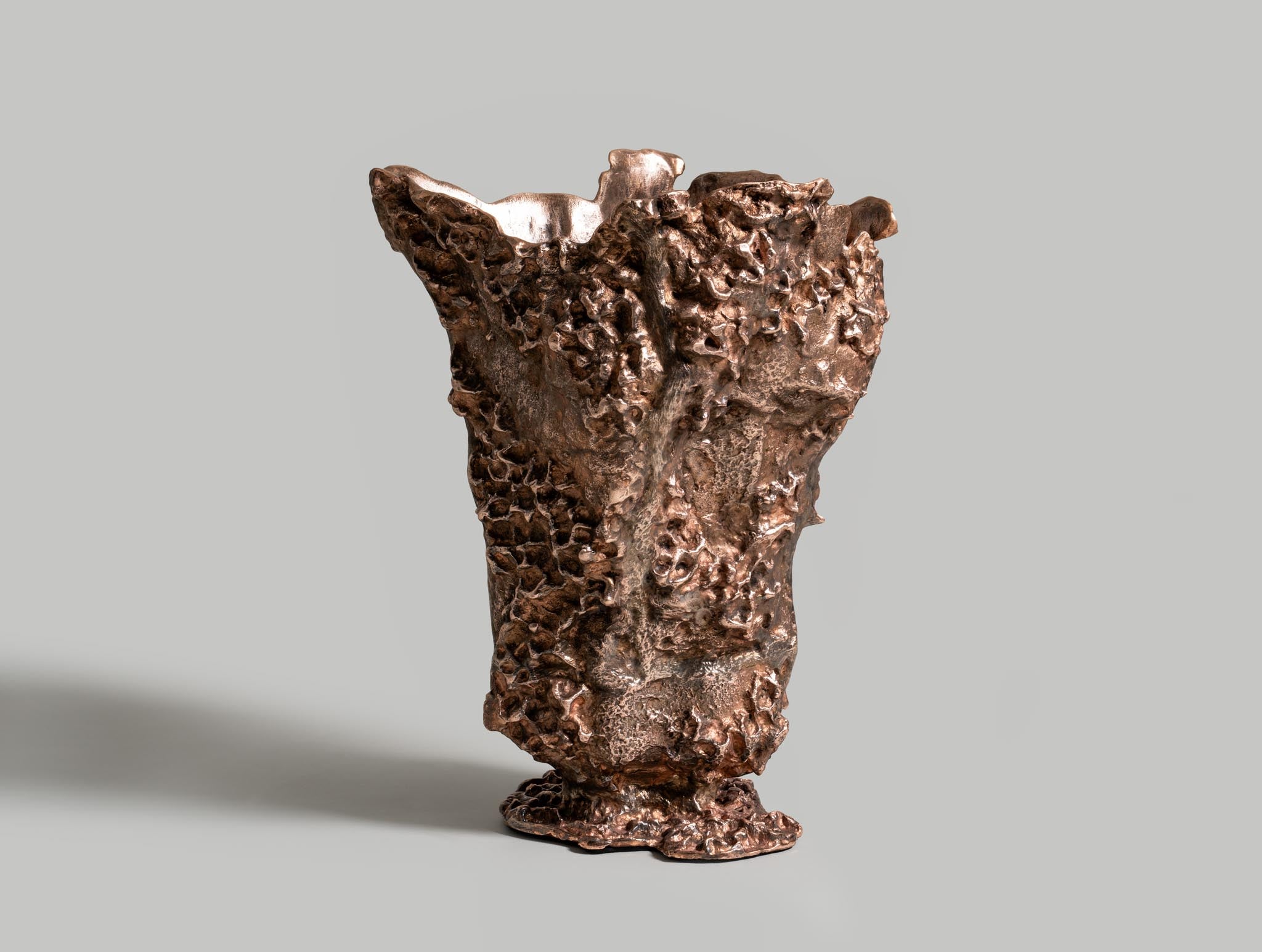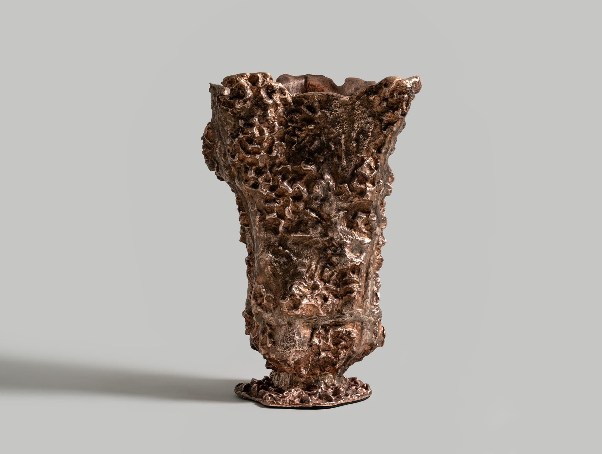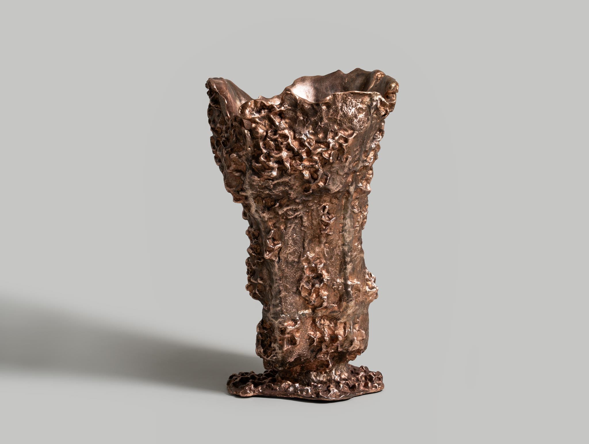Forests hold within them an inimitable strength, they are layered, organic, and ever-evolving. The Red Earth vessel draws from the rhythm of growth and renewal in this living terrain. Cast entirely in bronze, its textured surface mimics the bark, roots, and rugged formations found deep within the forest floor. Through the studio’s explorations in bronze casting, the material is allowed to flow, twist, and solidify into sculptural forms that appear almost alive.