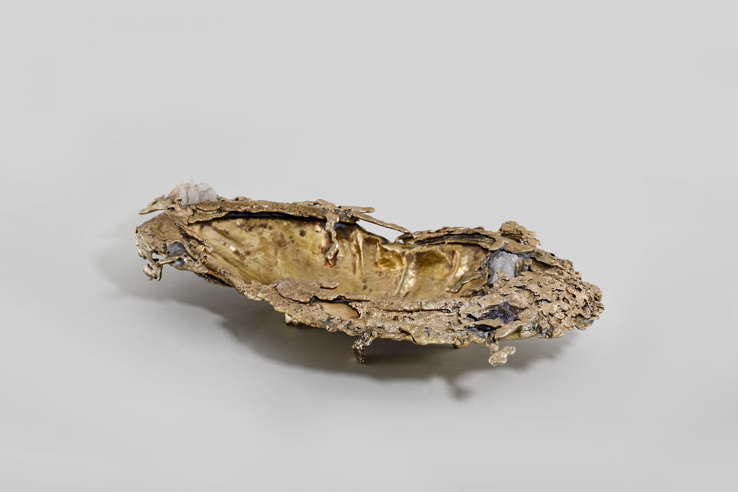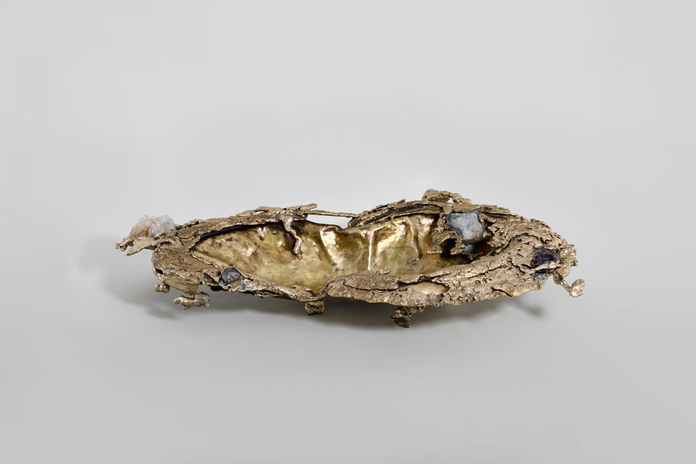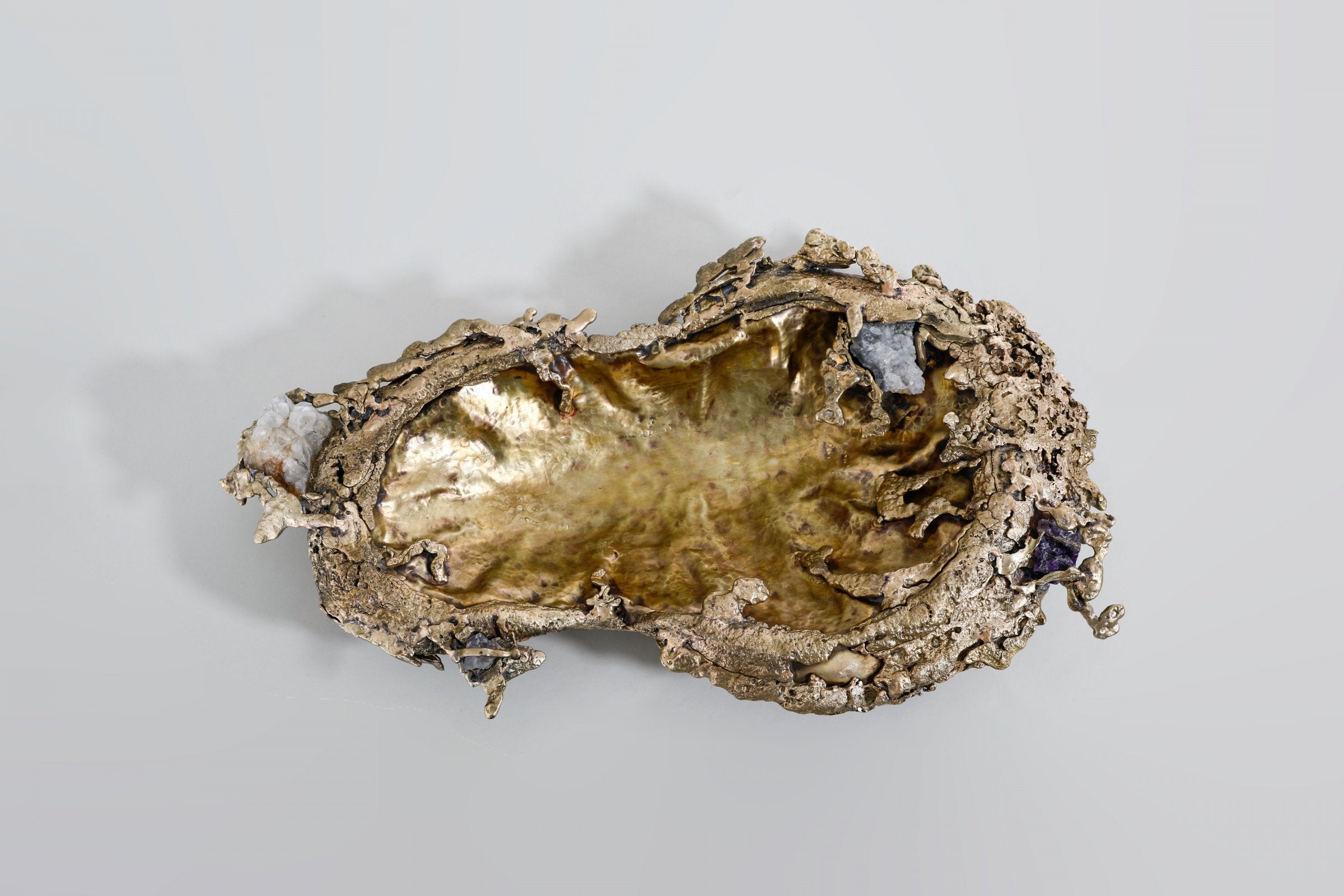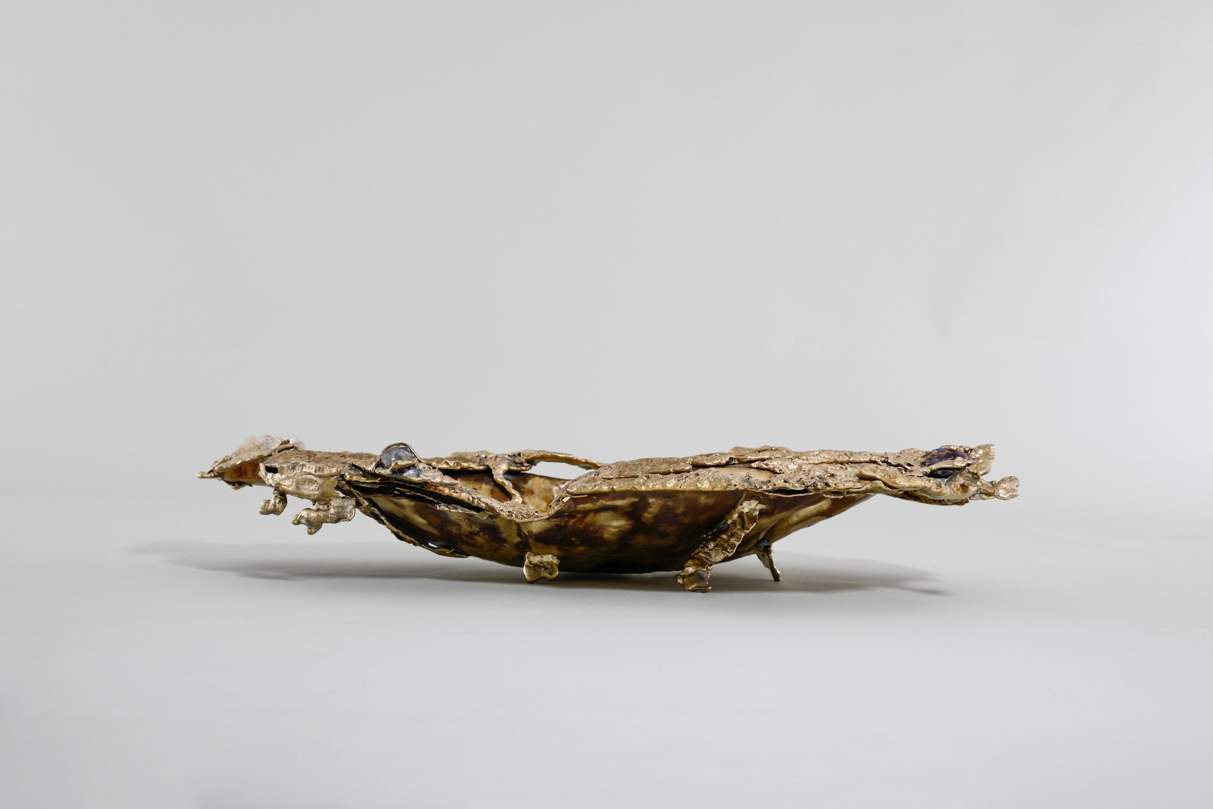 Inspired by the Indian mangroves and the shifting textures of forest canopies, Song of the Forest evokes nature’s quiet, layered abundance. Sculpted in brass—both cast and sheet—and accented with semi-precious stones, each piece gestures toward bark, leaf, and bloom through lyrical abstraction. The collection invites a tactile memory of wilderness—intuitive, untamed, and quietly resonant.