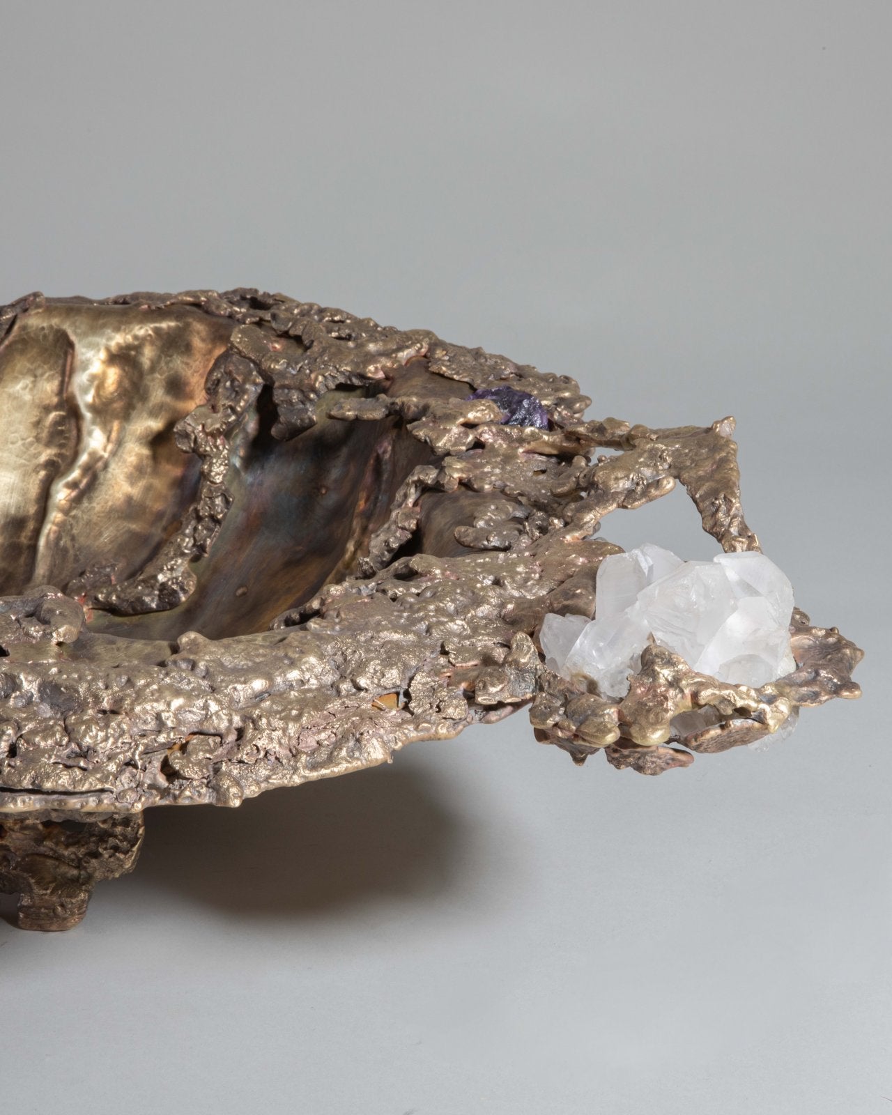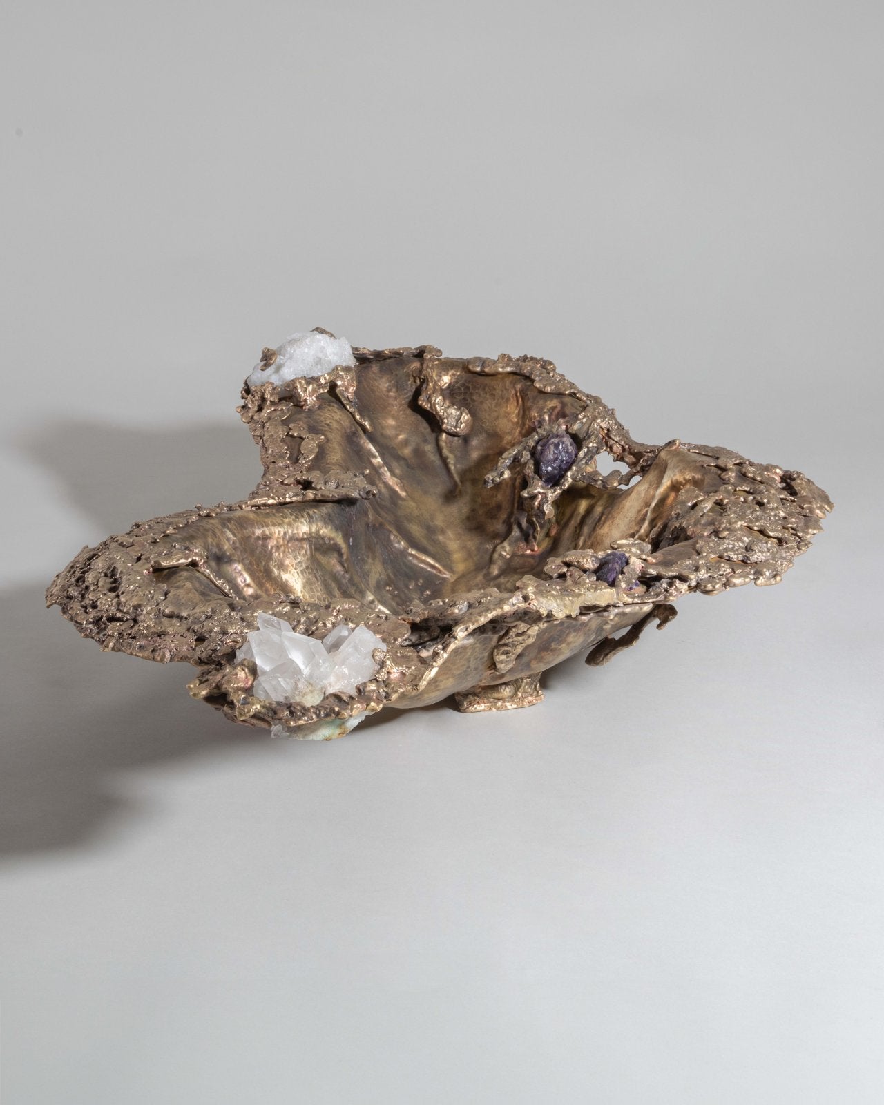 Inspired by the Indian mangroves and the shifting textures of forest canopies, Song of the Forest evokes nature’s quiet, layered abundance. Sculpted in brass—both cast and sheet—and accented with semi-precious stones, each piece gestures toward bark, leaf, and bloom through lyrical abstraction. The collection invites a tactile memory of wilderness—intuitive, untamed, and quietly resonant.