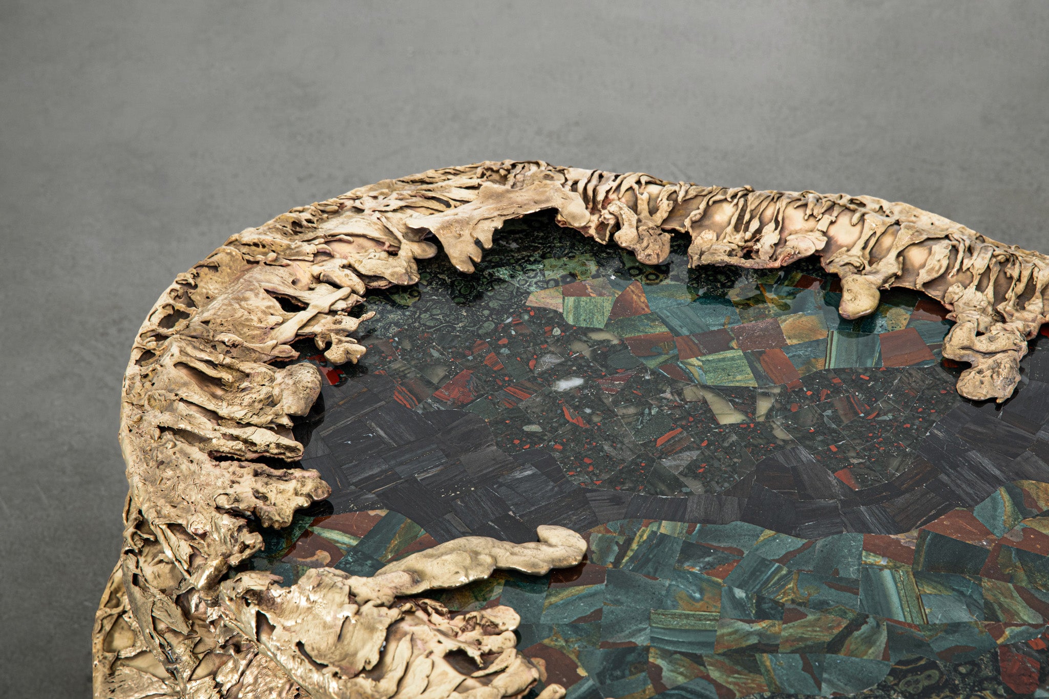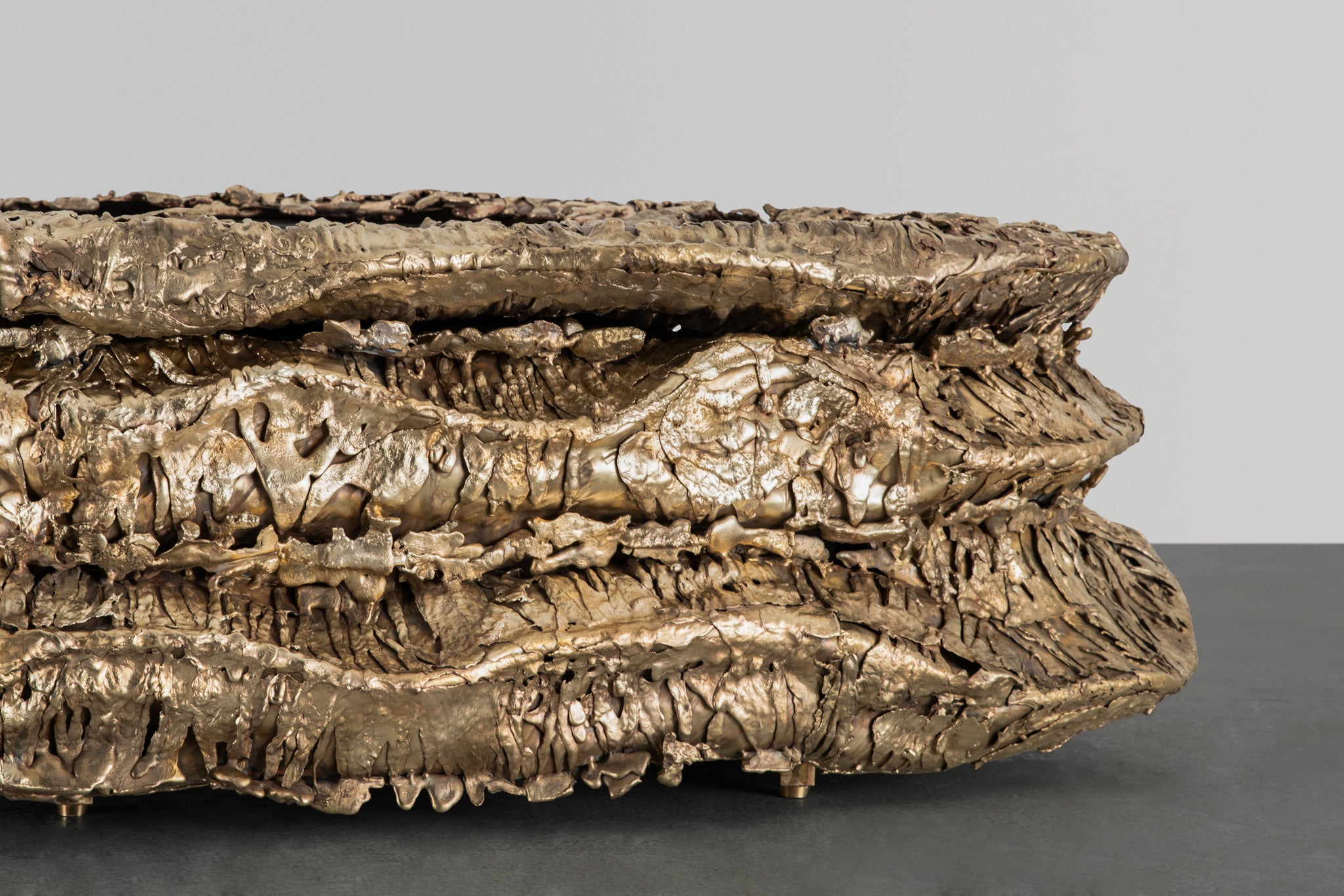 Inspired by the Indian mangroves and the shifting textures of forest canopies, Song of the Forest evokes nature’s quiet, layered abundance. Sculpted in brass—both cast and sheet—and accented with semi-precious stones, each piece gestures toward bark, leaf, and bloom through lyrical abstraction. The collection invites a tactile memory of wilderness—intuitive, untamed, and quietly resonant.