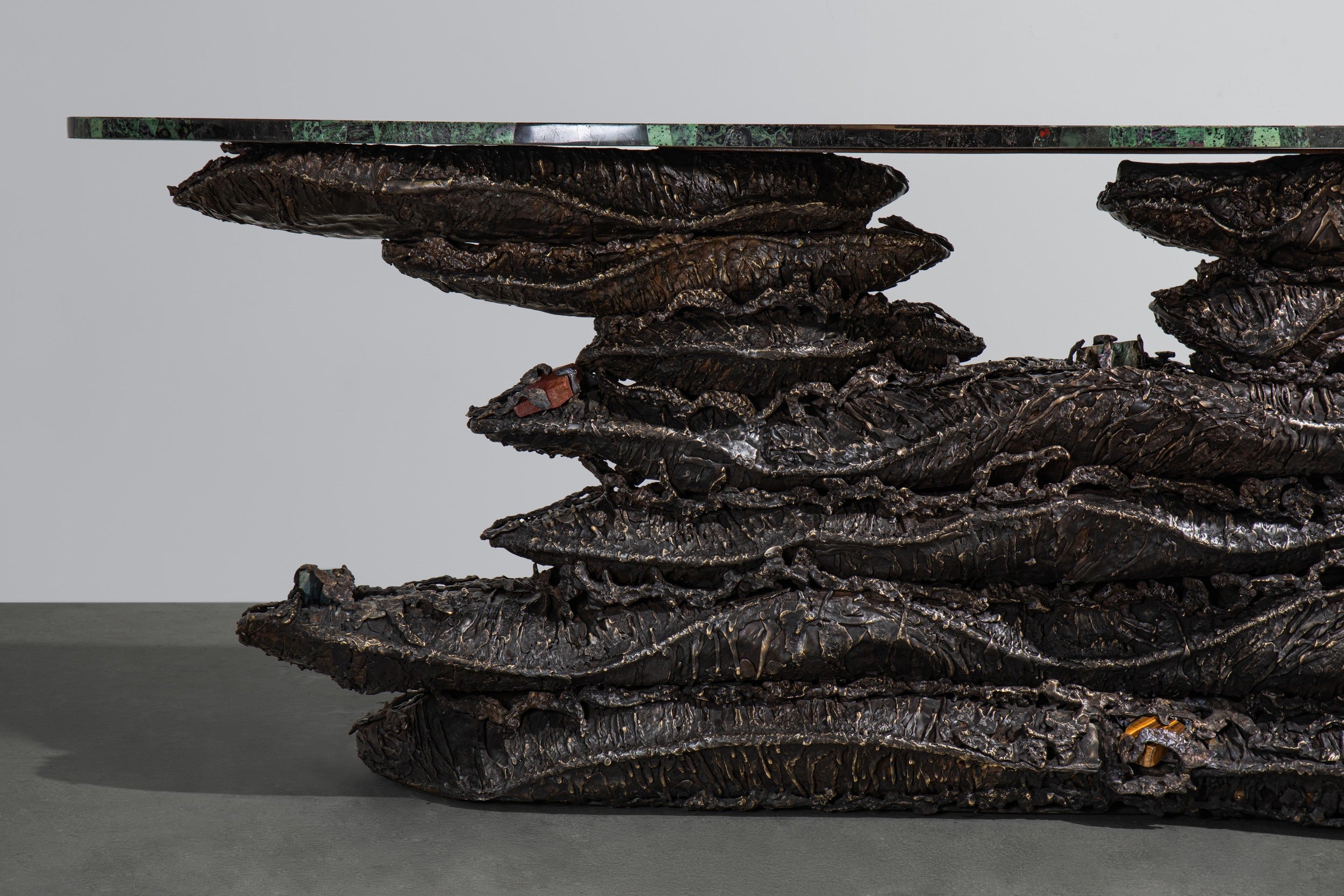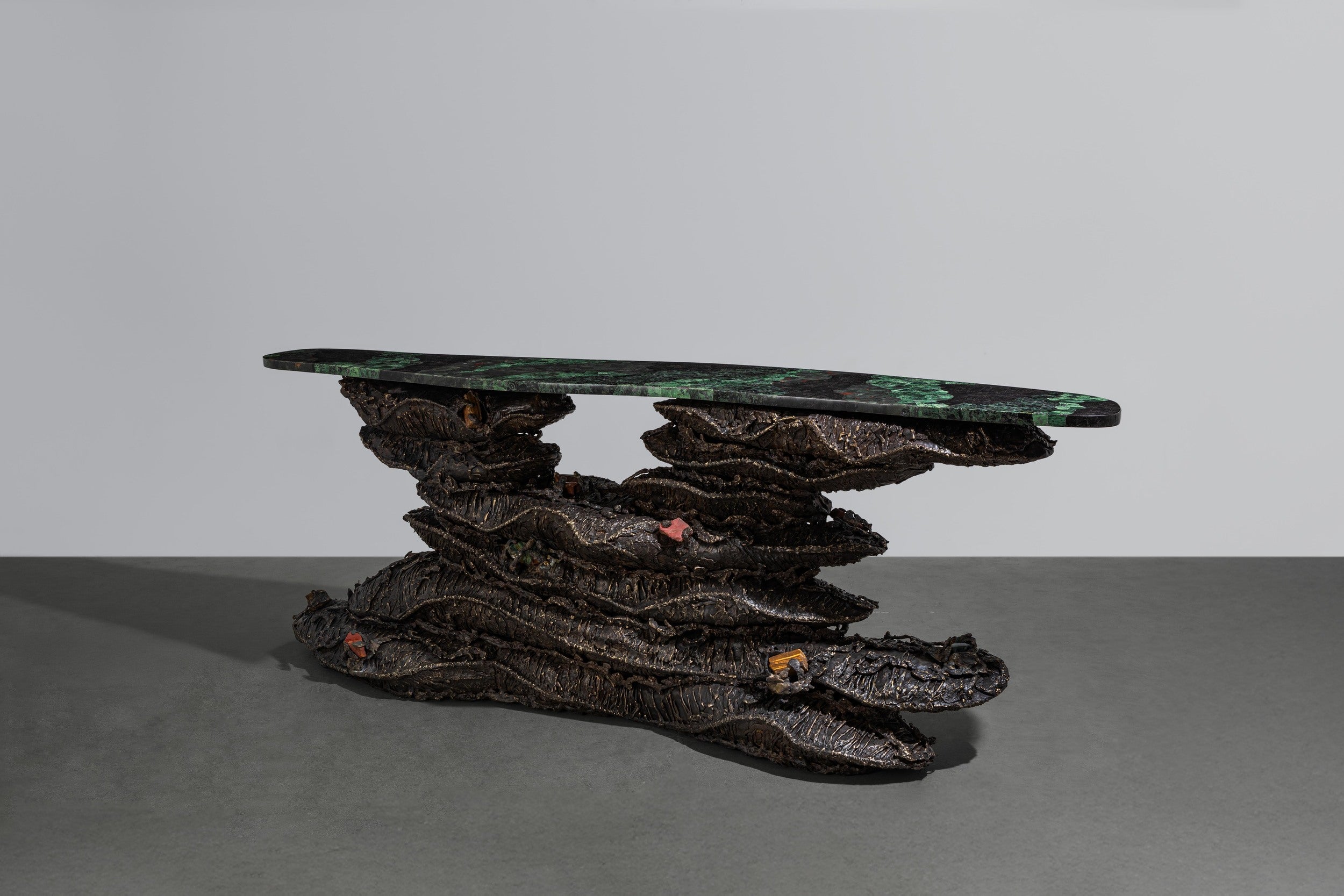 The spreading tree limbs of spring time, the bark of the arbour and the colours of the forest are the inspiration behind the Song of the Forest collection, which evokes the Indian mangrove and forest with its shades and textures. This story is brought to life in this collection through a medley of metal forms – both sheet and cast – with semi-precious stones that give voice to the mosaic of the forest.