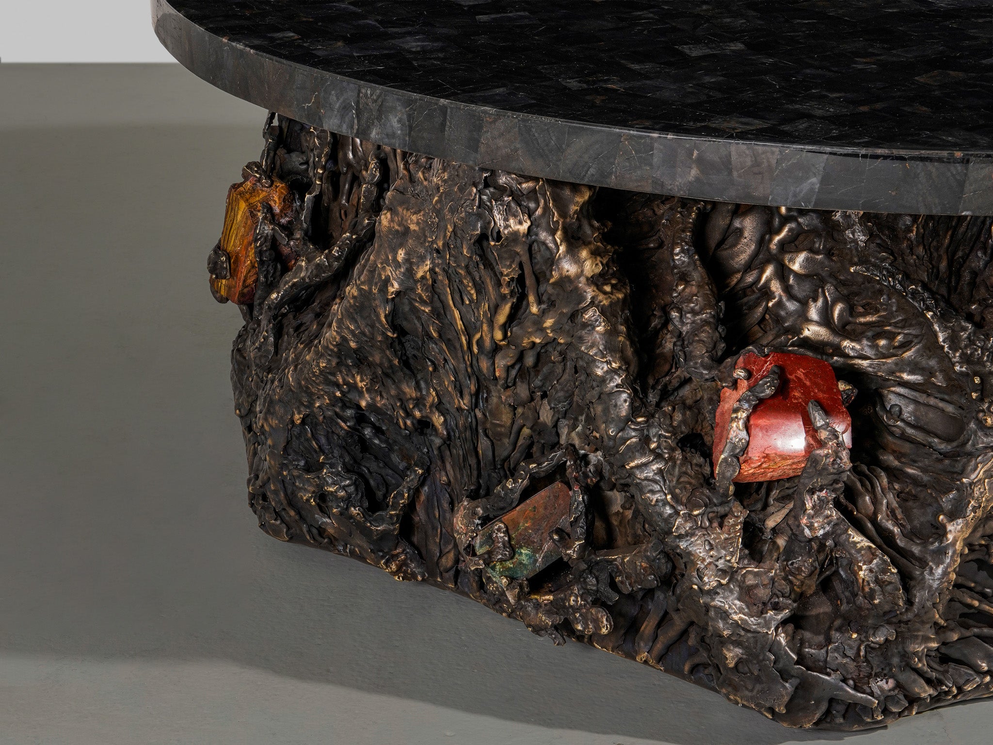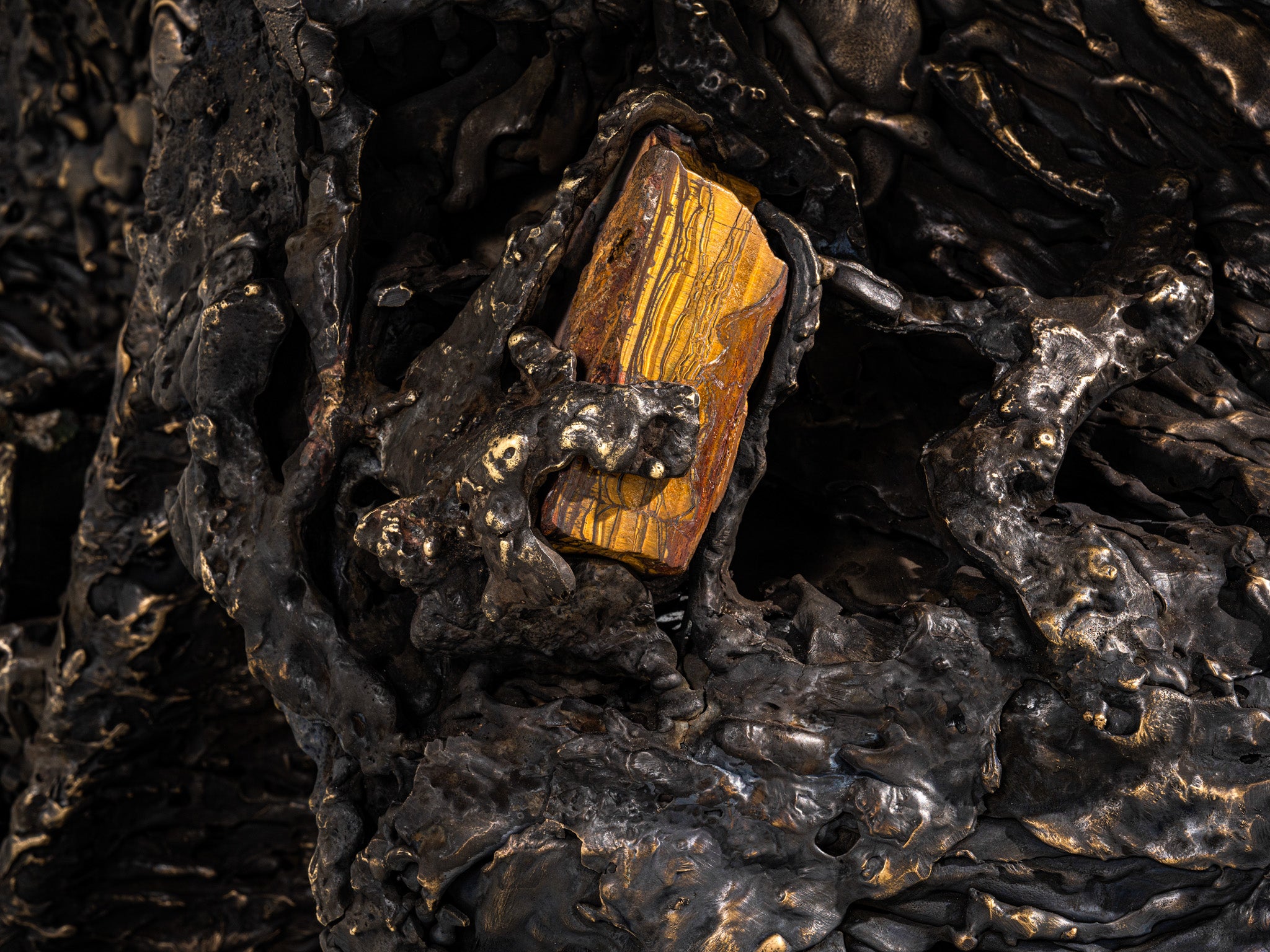 Inspired by the Indian mangroves and the shifting textures of forest canopies, Song of the Forest evokes nature’s quiet, layered abundance. Sculpted in brass—both cast and sheet—and accented with semi-precious stones, each piece gestures toward bark, leaf, and bloom through lyrical abstraction. The collection invites a tactile memory of wilderness—intuitive, untamed, and quietly resonant.